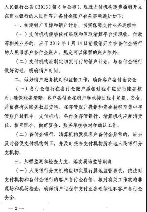 2018年6月29日,央行发布《关于支付机构客户备付金全部集中交存有关事宜的通知》(即“114号文”),自2018年7月9日起,按月逐步提高支付机构客户备付金集中交存比例,到2019年1月14日实现100%集中交存央行。这是央行第一次对备付金交存提出具体时间。